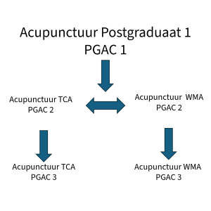 Na het 1e jaar Acupunctuur PGAC 1 kan de cursist kiezen uit 2 richtingen :